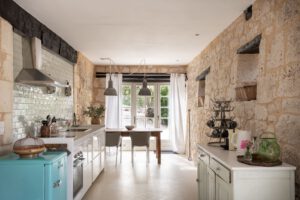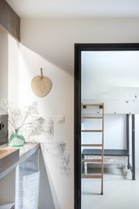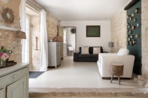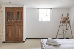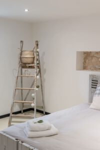 Suitable cottage for 4 persons (2 adults and 2 children): Cottage based in the souterrain of the big country house with open living room and well-equipped kitchen with a dishwasher, Nespresso coffee machine, hand blender and toaster. Bathroom with shower, toilet and one sink. Two bedrooms with 1 x 2 person bed and 2 x 1 person bunkbeds. Big private terras with BBQ and with a view on the pool.