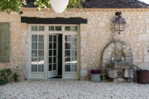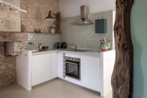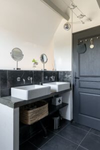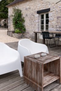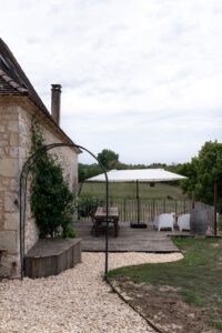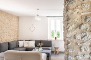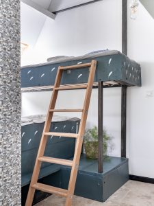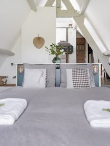 Suitable for 4 persons (2 adults and 2 children): Cottage in the left wing of the big house with open living room and well-equipped kitchen with a dishwasher, Nespresso coffee machine, hand blender and toaster. First floor big bathroom with separate shower and bath. Toilet and two sinks. Big sleeping room with 2 person bed with divided bunkbeds 2 x 1 bed. Big wooden private terras with BBQ and with a view on the playfield and pool.